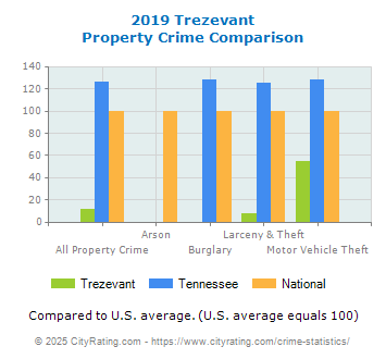 Trezevant Property Crime vs. State and National Comparison