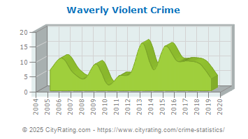 The city violent crime rate for Waverly in 2019 was lower than the