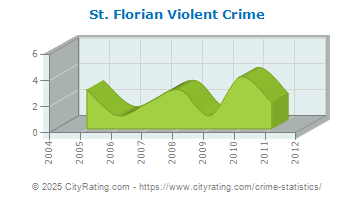 The city violent crime rate for St. Florian in 2011 was higher than the