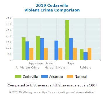 The city violent crime rate for Cedarville in 2019 was higher than the