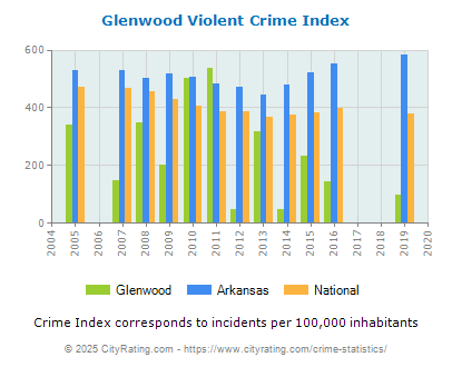 data on this Glenwood, Arkansas crime rate report is the