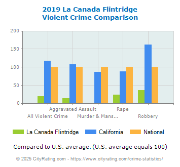 In 2019 the city violent crime rate in La Canada Flintridge was lower than the