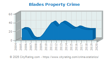 average by 28.23% and the city property crime rate in Blades was lower than the
