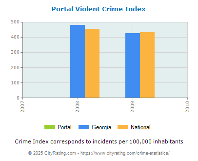 crime rate data displayed above was generated from the trends and crime data available from previous years of actual reported data. In this case, the Portal crime report data for 2025 was projected from 2 years of actual data. The last year of actual available crime data, as reported above, was 2009.