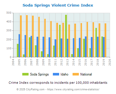 In 2019 the city violent crime rate in Soda Springs was higher than the
