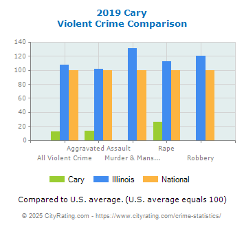 crime rate data displayed above was generated from the trends and crime data available from previous years of actual reported data. In this case, the Cary crime report data for 2025 was projected from 9 years of actual data. The last year of actual available crime data, as reported above, was 2019.