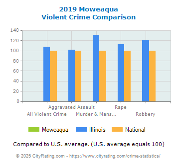 In 2019 the city violent crime rate in Moweaqua was lower than the