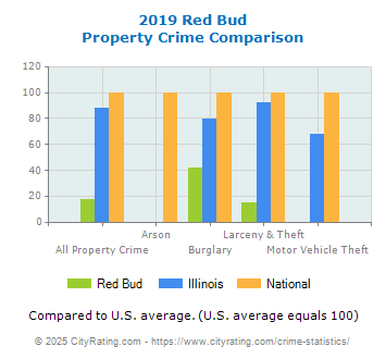 average by 39.84% and the city property crime rate in Red Bud was lower than the
