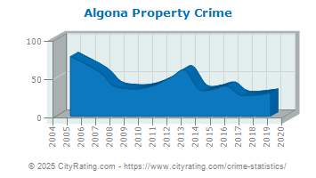 average by 2.25% and the city property crime rate in Algona was lower than the