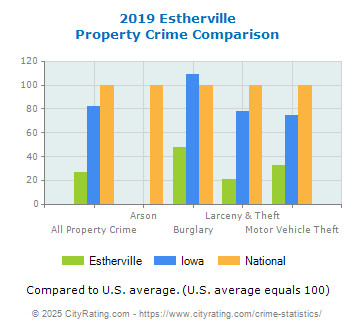 average by 57.71% and the city property crime rate in Estherville was lower than the