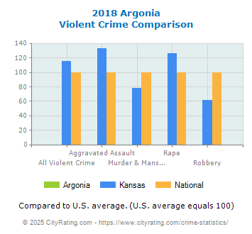 In 2018 the city violent crime rate in Argonia was lower than the