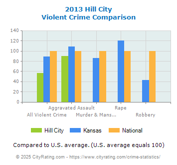 Hill City crime statistics report an overall upward trend in crime based on data from 7 years with violent crime decreasing and property crime increasing. Based on this trend, the crime rate in Hill City for 2025 is expected to be higher than in 2013.