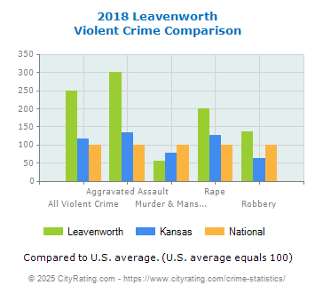 In 2018 the city violent crime rate in Leavenworth was higher than the