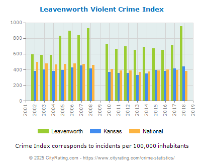 The city violent crime rate for Leavenworth in 2018 was higher than the