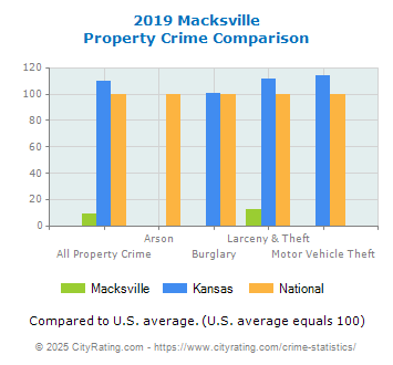 average by 100% and the city property crime rate in Macksville was lower than the