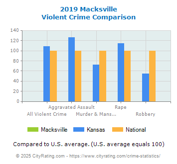 In 2019 the city violent crime rate in Macksville was lower than the