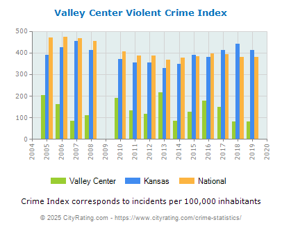 The city violent crime rate for Valley Center in 2019 was lower than the