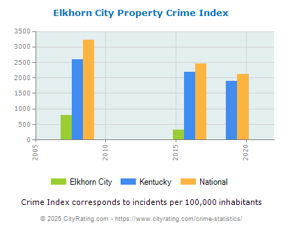 by 100% and the city property crime rate in Elkhorn City was lower than the