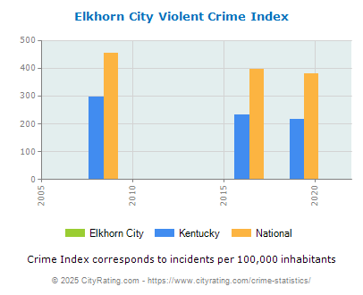 In 2019 the city violent crime rate in Elkhorn City was lower than the