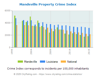 average by 61.53% and the city property crime rate in Mandeville was lower than the
