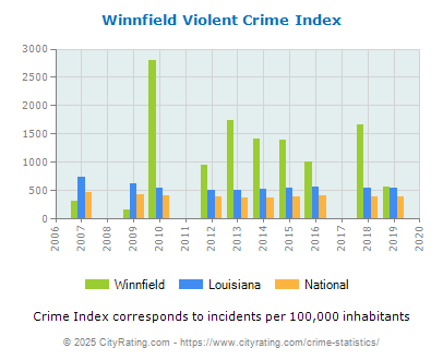 In 2019 the city violent crime rate in Winnfield was higher than the