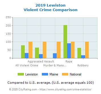 In 2019 the city violent crime rate in Lewiston was higher than the