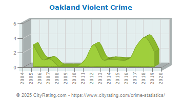 crime rate data displayed above was generated from the trends and crime data available from previous years of actual reported data. In this case, the Oakland crime report data for 2025 was projected from 14 years of actual data. The last year of actual available crime data, as reported above, was 2019.
