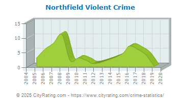 Northfield crime statistics report an overall downward trend in crime based on data from 13 years with violent crime decreasing and property crime decreasing. Based on this trend, the crime rate in Northfield for 2025 is expected to be lower than in 2019.