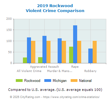 In 2019 the city violent crime rate in Rockwood was lower than the