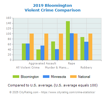 In 2019 the city violent crime rate in Bloomington was lower than the