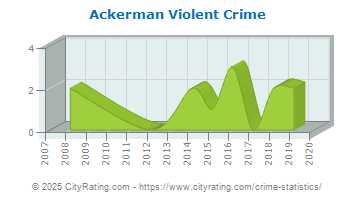 The city violent crime rate for Ackerman in 2019 was lower than the