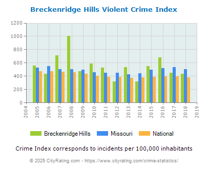 The city violent crime rate for Breckenridge Hills in 2018 was higher than the