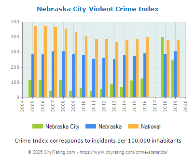 The city violent crime rate for Nebraska City in 2019 was lower than the