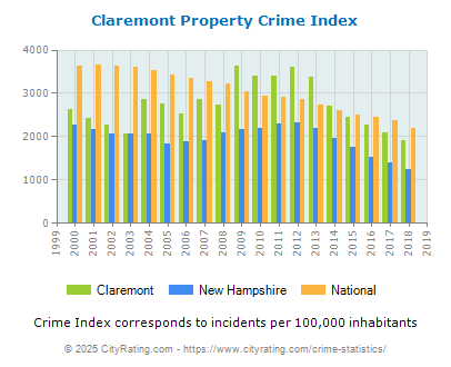 average by 17.87% and the city property crime rate in Claremont was lower than the