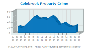 average by 87.53% and the city property crime rate in Colebrook was lower than the