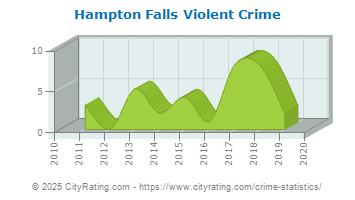 In 2019 the city violent crime rate in Hampton Falls was lower than the