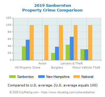 average by 64.56% and the city property crime rate in Sanbornton was lower than the
