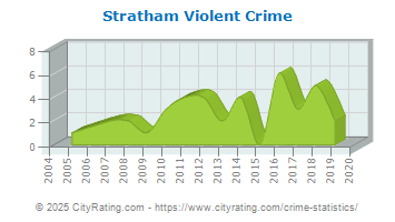 Stratham crime statistics report an overall downward trend in crime based on data from 14 years with violent crime increasing and property crime decreasing. Based on this trend, the crime rate in Stratham for 2025 is expected to be lower than in 2019.