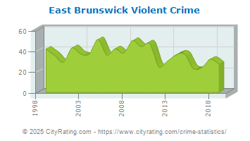 In 2019 the city violent crime rate in East Brunswick Township was lower than the