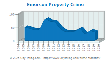 average by 96.55% and the city property crime rate in Emerson was lower than the