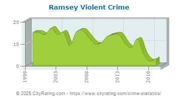 The city violent crime rate for Ramsey in 2019 was lower than the