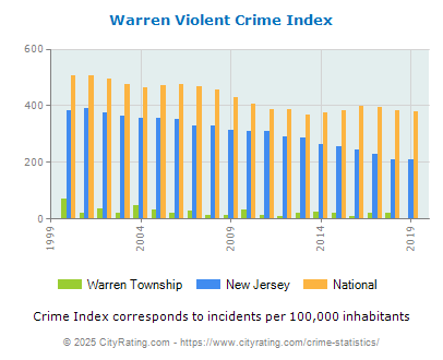 The city violent crime rate for Warren Township in 2019 was lower than the