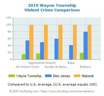 In 2019 the city violent crime rate in Wayne Township was lower than the
