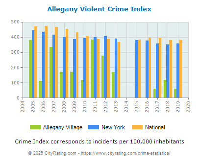 In 2019 the city violent crime rate in Allegany Village was lower than the
