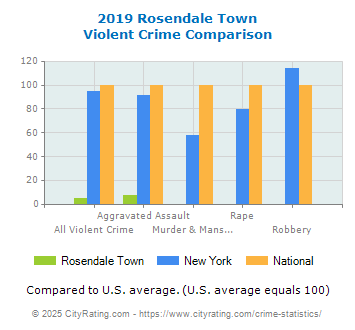 In 2019 the city violent crime rate in Rosendale Town was lower than the