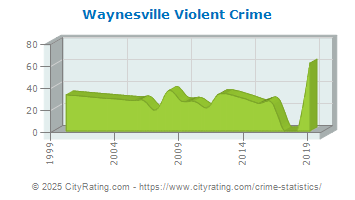 The city violent crime rate for Waynesville in 2019 was higher than the