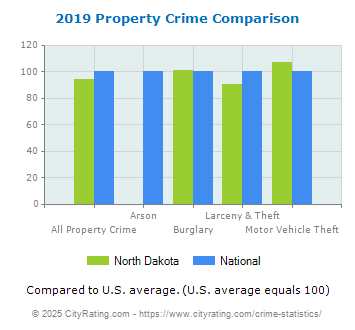 Based on this report, the crime rate in North Dakota for 2025 is expected to be higher than in 2019 when the state violent crime rate was lower than the