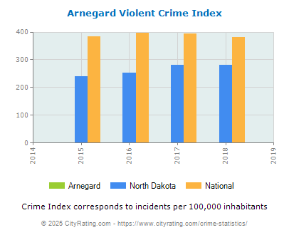 In 2018 the city violent crime rate in Arnegard was lower than the