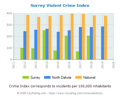 crime rate data displayed above was generated from the trends and crime data available from previous years of actual reported data. In this case, the Surrey crime report data for 2025 was projected from 8 years of actual data. The last year of actual available crime data, as reported above, was 2019.