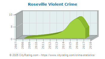 Roseville crime statistics report an overall upward trend in crime based on data from 5 years with violent crime increasing and property crime increasing. Based on this trend, the crime rate in Roseville for 2025 is expected to be higher than in 2017.